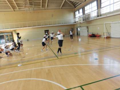 9日(水)、今回は、ハンドボールの選手を招いて、4年生がハンドボールの体験をしました。足の動きと上半身の動きを同時に行うので、最初は戸惑っていましたが、練習を重ねるうちに徐々に動きがスムーズになってきました。ゴールめがけて、強いボールを投げられる人も出てきました。いろいろな球技を体験して、自分に合ったスポーツを見つけてほしいと思います。