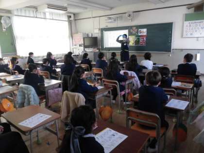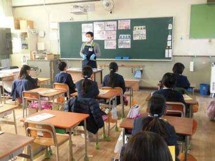 24日(火)、3年生が2時間枠で、スーパーライフから社員の方に来ていただき、出前授業をクラスごとに受けました。食品ロス、食品に関するクイズ、子どもたちからの質問コーナーなど、食に関するいろいろなことを聞かせていただきました。