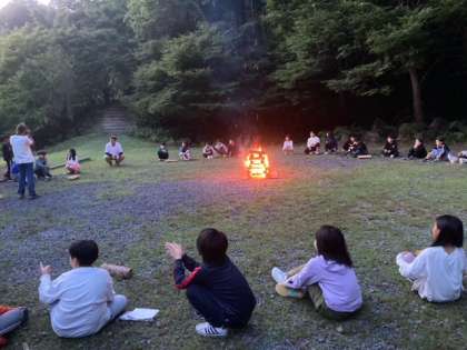 キャンプファイヤーの様子です。各クラスから出し物がキャンプファイヤーを盛り上げます。