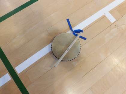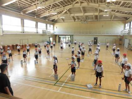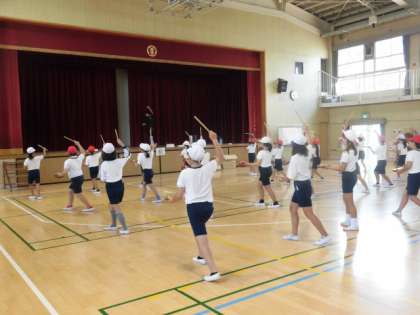 5日(火)、体育の時間のプール授業が先週で終わり、今週から体育の時間で運動会練習がスタートしました。5年生の団体演技の練習を体育館で行っています。太鼓を使った演技です。子どもたちに太鼓を配り練習が始まりました。