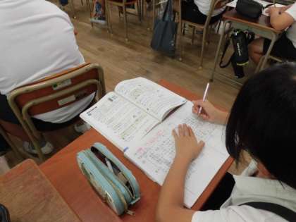 15日(金)、運動会前なので運動会練習も頑張っていますが、教室での学習も停滞することなく頑張っています。5年生の算数の授業です。倍数と公倍数の単元です。公倍数や最小公倍数の学習をしています。集中して学習しています。