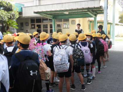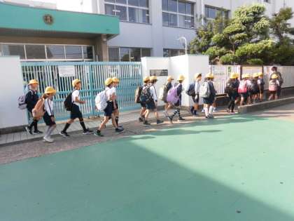 12日(木)、好天に恵まれて、4年生が遠足に出発しました。