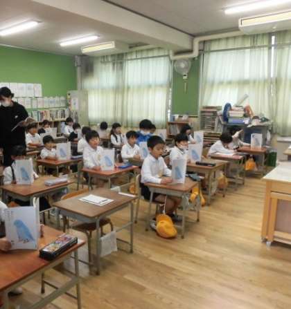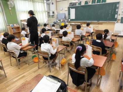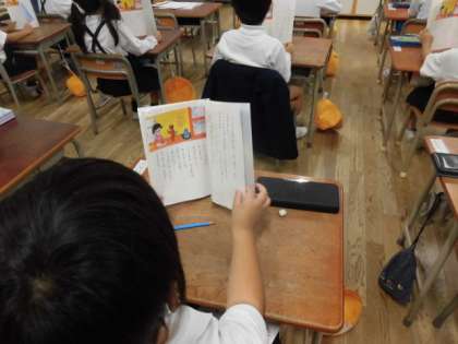 23日(月)、1年生の国語の授業です。全員で教科書読みをしていました。