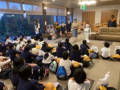 予定通りに宿泊する旅館「みち潮」に到着して、入舎式を行いました。