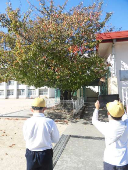 タブレットを使い、写真を撮りながら観察しています。写真に残しておけば、教室にもどってもう一度見直すことができます。