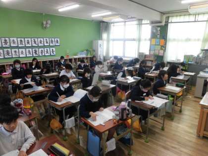 6日(水)、調査2日目です。今日は算数と理科、5,6年生はその後、英語の問題に取り組みました。英語は放送問題もありました。今日もしっかり頑張っていました。