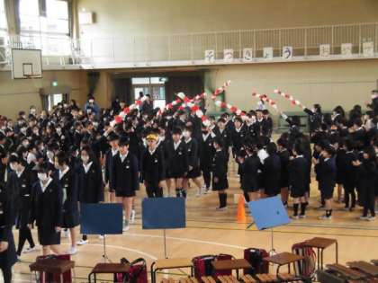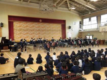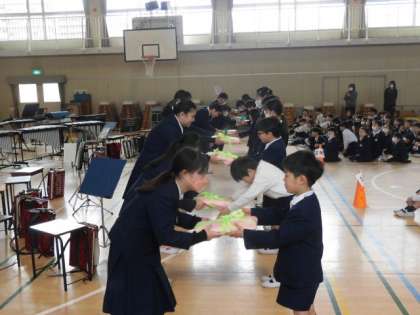下級生から音楽とお礼の言葉があり、6年生からは、音楽と各学年にプレゼントがありました。