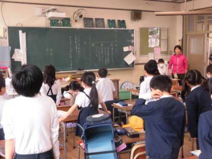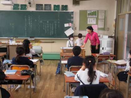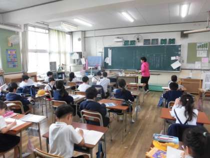 3年生朝学活の様子です。連絡帳を書いたあと、今日の係の人が前に出て朝の連絡を行います。朝のあいさつの後、本日の予定を確認しています。3年生になると係がしっかり行ってくれます。