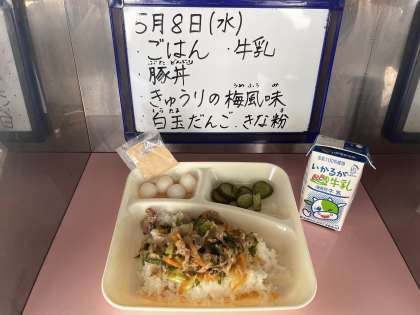 白玉だんごに、砂糖、うすくちしょうゆ、でんぷんで作ったほんのり甘いタレをからませました。のどにつまらないように、よく噛んで食べるように声かけをしました。
