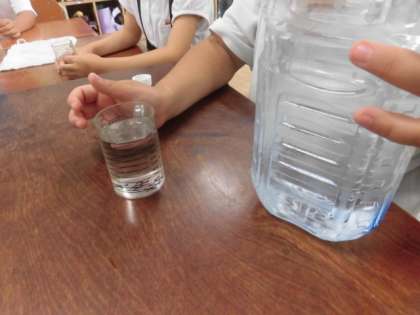 ペットボトルの水をdLますを使っていろいろな大きさのペットボトルの体積をはかっています。