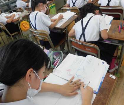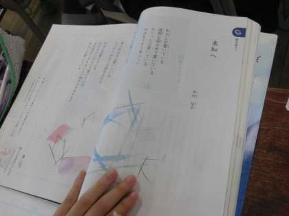 詩の音読です。「未知へ」という作品を学んでいました。全員で音読していました。