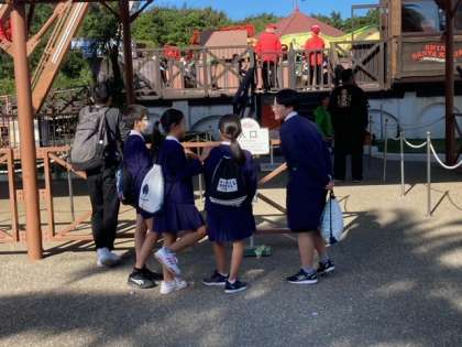 たくさん乗り物があるので、どれに乗るか迷っています。