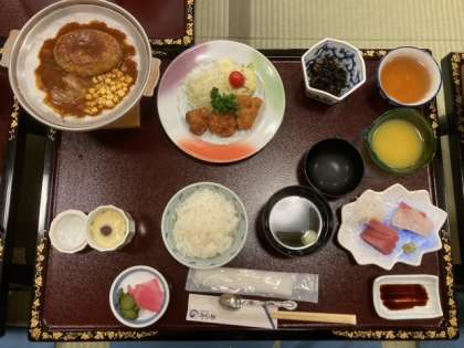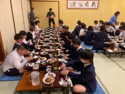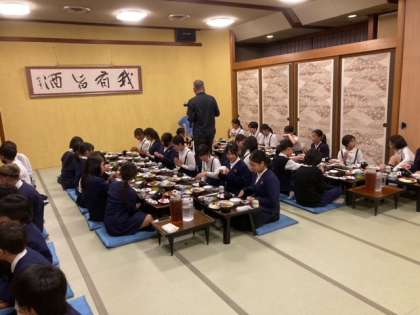 夕食です。係の人の「いただきます」の号令で食事が始まりました。