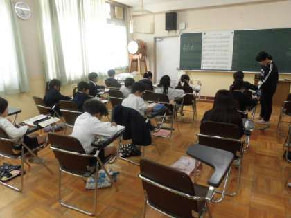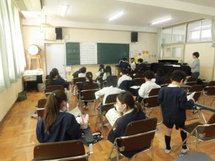 3年生の音楽の時間です。今日のテーマは、「ソラシドレのリコーダーの指のポジションを覚える」です。