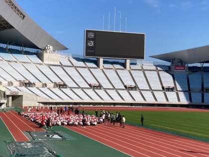 10校の小学校が集まり、6年生が長居ヤンマースタジアムで、スポーツ交歓会を行ないました。