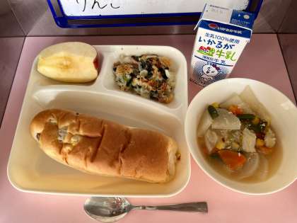 今日のりんごは、青森県産のサンジョナゴールドでした。酸味が強く、シャリシャリとした食感が特徴です。前回のりんごよりも皮が薄く、皮ごと食べても気になりませんでした。