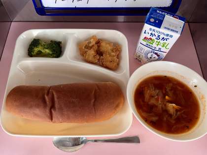 フリッターとは、小麦粉や泡立てた卵白などで作った衣をつけて油で揚げたものです。給食の「白身魚フリッター」には、卵を使っていません。