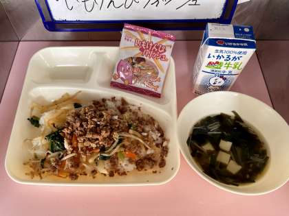 ほうれんそうは、冬が旬の野菜です。甘みが増して、ビタミンCの含有量も夏採りのものと比べると3倍ほどになります。今日は、ビビンバに使われています