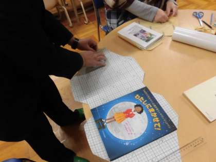 図書館補助員の方に教えていただき、本の透明カバーの貼り付けを行ってみました。一冊貼り付けるのに時間がかかりました。「慣れると上手にできますよ。」とおっしゃっていました。本を長持ちさせるように、子どもたちが知らないところで作業されています。