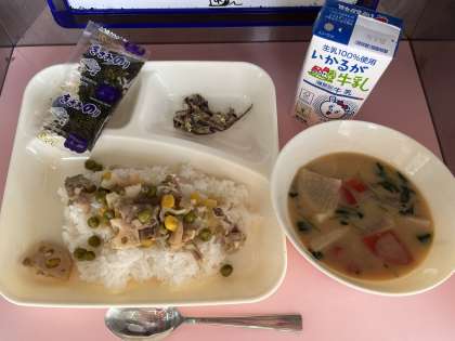正月の行事献立です。「ごまめ」は「田作り」ともいい、昔、肥料としてイワシを田に巻いたところ、豊作になったことから、豊作を願う気持ちが込められています。