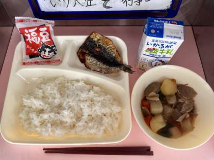 今日は、節分の行事献立でした。節分の日には、悪い出来事を鬼に例えて追い払い、福を呼び込むことで、新しい年の幸福を願います。