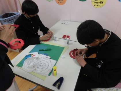 喜連中学生を職場体験で受け入れ2日目です。保健室で掲示物の作成と給食室前で、「いただきます」の挨拶指導を行っています。今日で2日間の職場体験は終わります。この体験を中学校生活に活かしてほしいと思います。