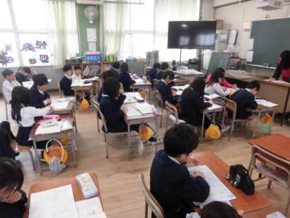 2年生の復習問題に取り組んで、答え合わせをしています。