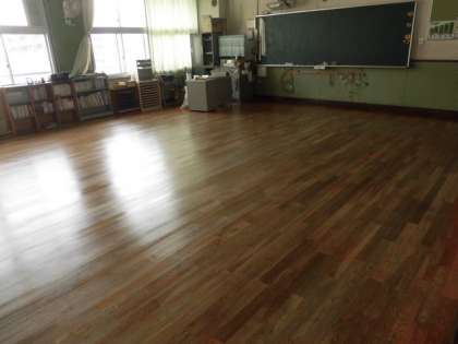 ワックスがけを行っています。新年度に向けて教室整備を行っています。