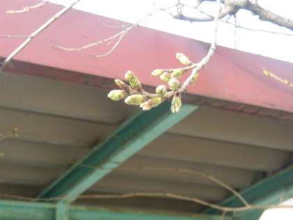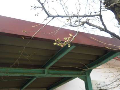 給食室前の桜が、最近の暖かさで蕾もふくらんできました。