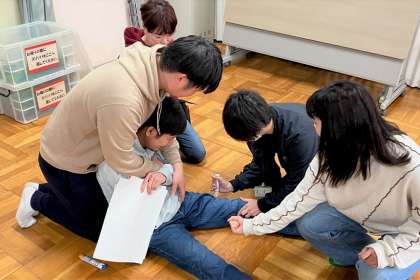 給食指導や食物アレルギー緊急時対応について共通理解を図りました。練習用エピペンで実際に注射も行いました。