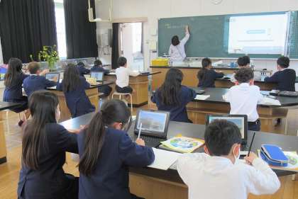 タブレットを使って、満開の桜を画像で記録しました。1年間、桜の木の様子を観察していきます。