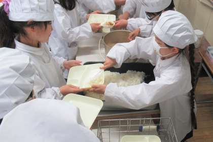 喜連小学校では、給食室でお米を炊いているので、炊きたての温かいご飯を食べることができます。