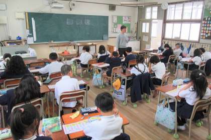 2〜6年生の子どもたちは、毎日2〜3文字の漢字を学習しています。(写真:3年生)