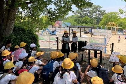 リーダーの子どもたちが、思い出に残る遠足にするために、電車に乗る際、遊ぶ際、お弁当を食べる際の約束事を伝えてくれました。