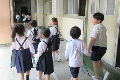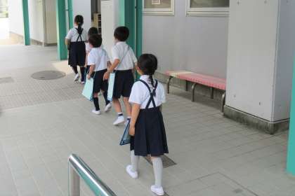 2年生は、先輩になったので、「一列で進むよ」「トイレは大丈夫?」など、1年生への気づかいを見せていました。
