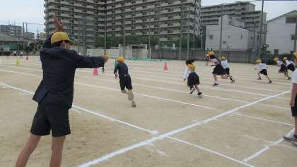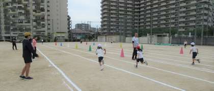 スポーツテストの時期に合わせて、運動委員会が企画・運営してくれています。15分休憩の時間に、5秒間でどこまで走れるかに挑戦します。