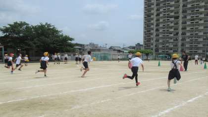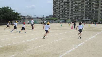 熱中症には十分注意しながら実施しています。5月22日は、雨の影響で運動場の状態が良くないので中止にしました。