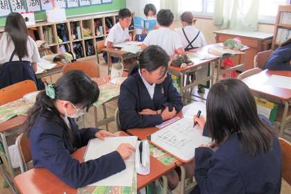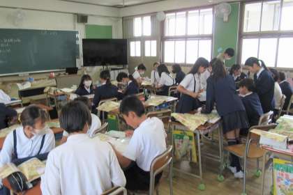 教科書の縄文時代と弥生時代のくらしの絵を見比べて、グループで気づいたことを出し合い、学級全体で交流しました。
