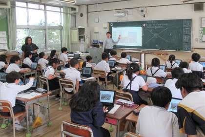 学習者用端末に取り込んだ『あべのハルカス展望台』から撮った写真を見ながら、東西南北の各方角にどのようなものがあるかを調べました。