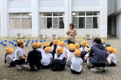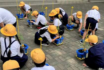 子どもたちは、熱心に自分のプランターのつぼみを数えていました。