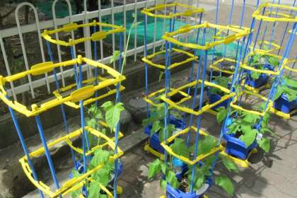 直近は、生活科や理科で育てている花、野菜の本の紹介でした。1年生のアサガオはつるが伸び、2年生のミニトマトは実をつけています。
