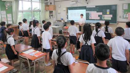 カルシウムには、骨や歯を丈夫にする、気持ちを落ち着かせる等のはたらきがあることを学びました。給食の牛乳を飲むことで、カルシウムを取ることができます。
