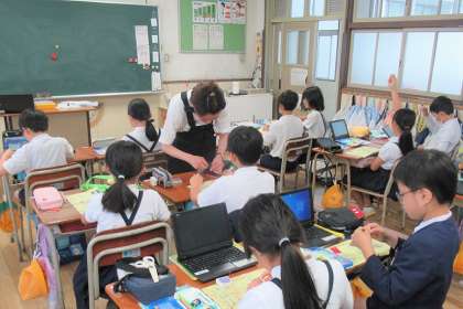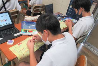 「裁縫」、手縫いの基礎、玉結びや玉止め、なみ縫い等を練習します。