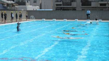 水慣れからバタ足、クロール、最後はみんなで同じ方向に回り、「うずまき」をつくりました。