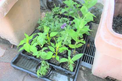 管理作業員さんが、百日草、ペチュニア、マリーゴールド等の苗を受け取ってきました。