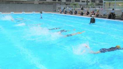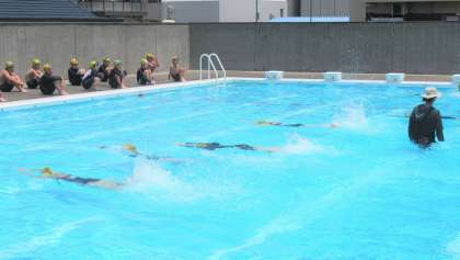 けのび、バタ足、クロールの順に、基本的な動作を確認していきます。