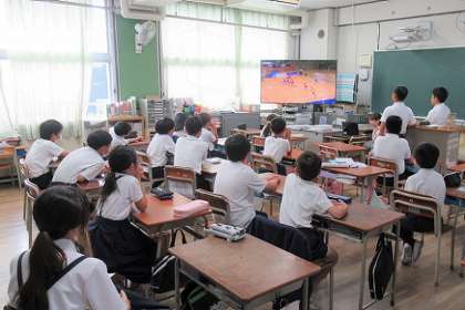 運動クラブは、2学期に行うティーボールとハンドボールの知識を映像で深めました。