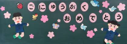 入学式では、校長先生のお話やPTA会長からのお話がありました。最初は緊張していた様子の新1年生でしたが、新入生歓迎の催しとして、新2年生が歌ったり発表したりして学校の様子を紹介してくれたので、緊張もほぐれ新しく始まる学校生活に意欲満々の様子でした。