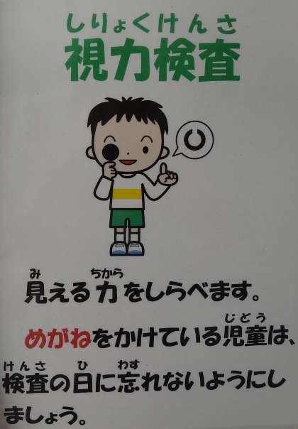 その他の行事として、4年生の視力検査が行われました。(写真は、保健室前に掲示されていた絵です)