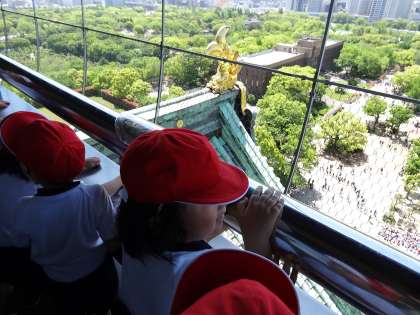 2年生は、大阪城公園へ遠足に行きました。久しぶりの晴天に恵まれたことや、現在「真田丸」が放映されていることから、大阪城にはたくさんの人たちが見学に来ていましたが、その中で、子どもたちは見学のマナーをよく守り、天守閣から広がる絶景を十分に眺めることができました。また、子どもたちの中には、真田幸村のことを知っており、天守閣に登れることをとても楽しみにしている児童もいました。